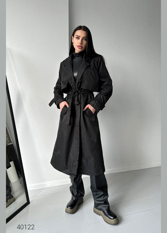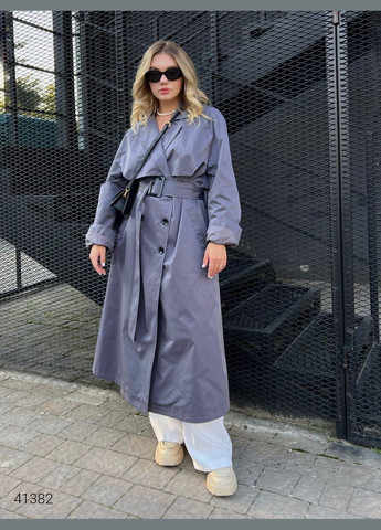 Плащ жіночий. Щільна тканина верху і підклад з плащової тканини роблять його непродувним, також добре захищає від дощу. Тканина: полірована меморі-сатин, підклад плащівка. Плащ добре підійде на холодну осінь. Ориентовні заміри по готовому виробу: 42-46 (1) (ОГ 116, довжина по спинці 123, довжина рукава від горл. 77), 48-52 (2) (ОГ 122, довжина по спинці 123, довжина рукава від горл. 77) Довжина: 123 см.