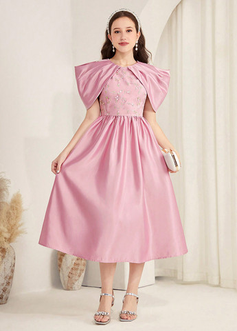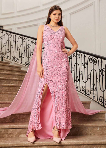 Червона сукня для дівчаток-підлітків. Це довга сукня червоного кольору з ефектним кроєм та спідницею, що розкльошує. Висока талія та бальний поділ. Сукня підходить для офіційних заходів, таких як весілля, вечірки та урочисті випадки. Сукня виготовлена із сітчастого матеріалу (100% поліестер) з підкладкою (100% поліестер). Рекомендації щодо догляду: ручне прання або професійне хімчистка.