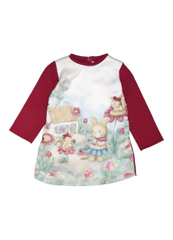 Дитяча сукня в горошок. Відрізне по лінії талії з довгими прозорими рукавами. Застібається ззаду на гудзик. Низ рукава на резинці.