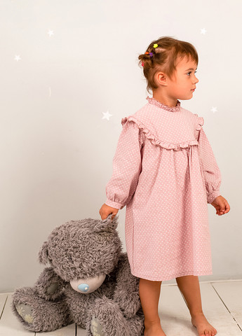 Рожеве плаття з довгим рукавом для дівчаток — незамінна річ у гардеробі. Стильна стійка, гудзики на рукавах та спинці, рюші на горлечку та грудях додають вишуканості образу. Іспанська 100% бавовна легка і підійде навіть для спекотного дня. Сертифікат OEKO TEX Standard 100; Вид тканини: батист; Склад: 100% бавовна; Колір основної тканини: Рожевий; Принт: Зірочки.