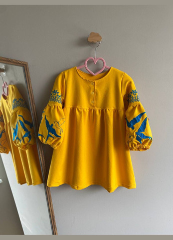 Сукня для дівчинки "Колоски" то є відмінний вибір для маленької леді. Виконано з якісного та м'якого до тіла полотна двунитка, добре носиться і переносить прання, не деформується. Особливостями даного продукту є: - Сукня декорована стильною вишивкою. - Рукавчики йдуть в формі ліхтарика, що зараз дуже модно. - Застібається на кнопочках. У гардеробі маленької модниці неодмінно має бути плаття. Склад : 80% бавовна , 20% поліестер . Розмір 110: Довжина сукні 59см, ширина сукні 31см, довжина рукава 38см