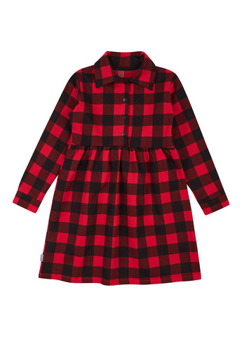 Легке бавовняне флісове плаття. Модель з круглим вирізом, застібкою на одному плечі (крім розмірів 98-104) і довгим рукавом. Зібраний виріз на талії та злегка розширена спідниця. Оздоблення в рубчик на вирізі та манжетах.