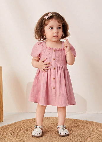 Сукня виконана з мусліну, дуже приємного до тіла, вільного силуету, відрізна нижче лінії талії, довжиною нижче коліна. Внизу сукня має об'ємну широку оборку. Декоративним елементом сукні виступає виріз на спинці у вигляді крапельки, який має зав'язки на гарний бант. Рукав втачной, довжиною ¾.