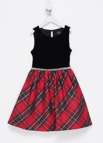 Сукня святкова комбінована, максі, застібка на гудзику, круглий виріз горловини, без рукавів, низ сукні на підкладці+фатин, пояс - стрічка. На розмір 10/12 довжина виробу 73 см.
