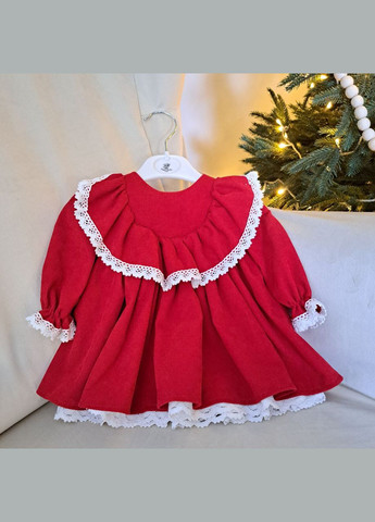 Ця сукня призначена для маленьких дівчаток. Сукня має стандартний крій, пошита з високоеластичної тканини та оборчастого подолу. Виріз круглий, талія висока.