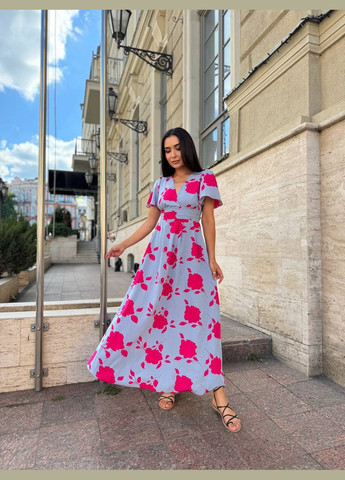 Обхват грудей (см): 42/44: 88 см. 46/48: 96 см. 50/52: 104 см. Артикул: 24037 N Легка та зручна літня сукня. Спинка відкрита, талія позаду на резинці, попереду декоративний пояс. *Колір або відтінок виробу на фотографії може відрізнятися від реального. Фурнітура, принт тканини товару можуть змінюватися виробником без попередження. Магазин не несе відповідальності за зміни, внесені виробником.