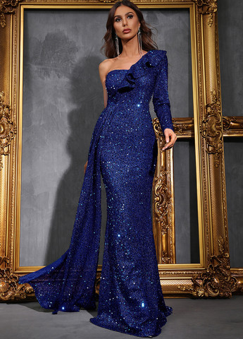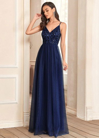 Матеріал Костюмна / Колір Темно-синій / Фасон Дзвін, Кльош, З відкритою спиною / Довжина виробу Максі / Стиль Святковий, Коктейльний, Вечірній