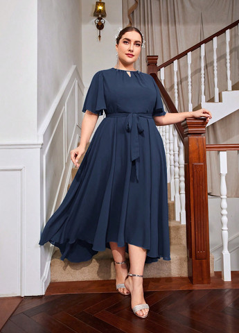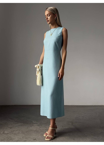 Довга бірюзова сукня зі штапелю з розкльошеним низом, декорованим переднім розрізом. Модель з кишенями, коміром та рукавами короткої довжини. Сукня з гумкою на талії та вирізом у горловини комплектується знімним поясом. Напівобхват: Груди: S (46), M (48), L (50), XL (52), Талія: S (33-45), M (35-47), L (37-49), XL (39-51), Стегна: S (57), M (59), L (61), XL (63), Довжина виробу - 145, Рукав - 23, Тканина: Низької еластичності. Парметри моделі: Зріст: 165 см; Груди: 88 см; Талія: 63 см; Стегна: 90 см; На моделі розмір: S