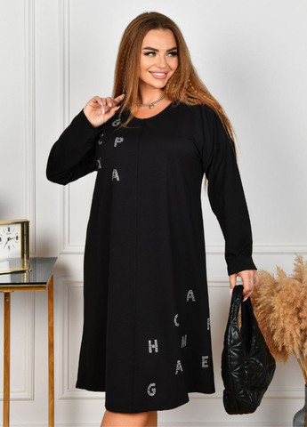 Сукня міді вільного крою з написом з стразів. Тканина: двунитка Заміри: 48-50 Об.гр - 116. Об.б - 120, довжина рукава від шиї – 70, довжина виробу - 104 52-54 Об.гр - 126 Об.б - 130 довжина рукава від шиї – 71, довжина виробу - 105 56-58 Об.гр 136 Об.б - 140, довжина рукава від шиї – 72, довжина виробу - 106
