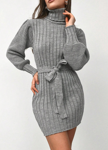 Матеріал Поліестер / Колір Сірий / Фасон Сукня-водолазка / Довжина виробу Міді та нижче коліна / Стиль Кежуал