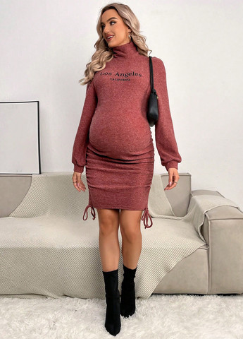 Ця сукня для вагітних має повсякденний дизайн А-силуету з високою талією та прямим подолом. Стиль із опущеними плечима з довгими рукавами невимушено облягає тіло, а пояс на талії надає чіткості.