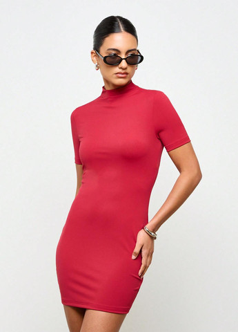 Приталена міні-сукня AiiRZ з високим коміром. Це червоне трикотажне сукня з високим коміром та короткими рукавами. Облягаючий крій. Можна прати у пральній машині або чистити у хімчистці.