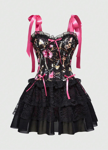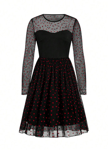 Сукня виготовлена з софту з принтом сердечка, тканина має гладку фактуру на дотик. Завдяки своїй міді довжині та фасону гарно сідає по фігурі. Сукня з короткими суцільнокроєними рукавами довжиною 24 см. Завдяки відсутності плечового шва створюється вільний силует. Сукня має круглий виріз горловини, який переходить у V-подібне декольте, яке застібається на ґудзики. Сукня з відрізною талією, розкльошеною спідницею та текстильним поясом у колір виробу.