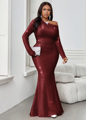 Матеріал Поліестер / Колір Фіолетовий / Фасон Дзвін, На одне плече / Довжина виробу Міді та нижче коліна / Стиль Коктейльний, Кежуал