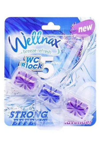Wellnax Eco Лаванда — ефективний туалетний блок, що підтримує чистоту та свіжість унітазу після кожного змивання. Завдяки активній формулі він запобігає утворенню вапняного нальоту, усуває неприємні запахи та наповнює ванну кімнату ніжним ароматом лаванди.