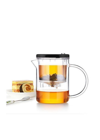 Внутрішня частина з кришкою надійно фіксується на колбі. Тому немає необхідності кришку знімати, діставати внутрішню частину, або притримувати її рукою, коли Ви виливаєте заварений чай у чашку.