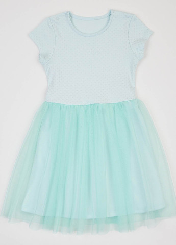 Стильна ментолова сукня з ошатним низом стане улюбленою сукнею вашої донечки! Як на свято, так і в будні вона виглядатиме неперевершено, та, в той же час, почуватиметься неймовірно зручно. Сукня виготовлена з бавовняного інтерлока, присборена по талії спідничка з м'якої євросітки. Ліф сукні з бавовняної тканини з блискучим принтом. Сукня з втачним рукавом, застібкою по плечу на кнопки. По внутрішньому шву горловини оздоблювальний лампас з бавовняної рібани.