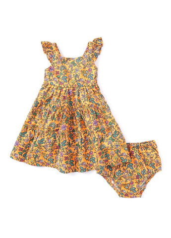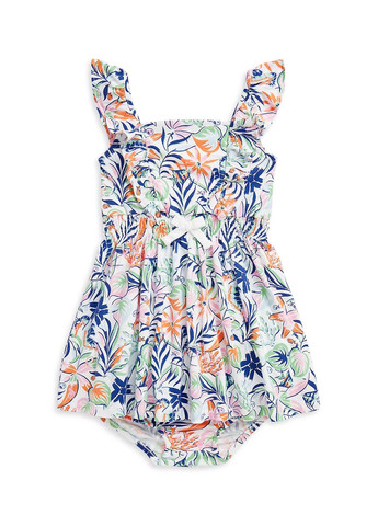 Дитячий комплект Polo Ralph Lauren Стильний комплект від Polo Ralph Lauren з тропічним принтом складається з сукні та трусиків. Сукня на бретелях із рюшами. Спідниця А-силуету забезпечує багато місця для комфортних рухів. Спідниця сукні з невеликими рюшами. Застібається ззаду на два гудзики. У комплект входить відповідні трусики для підгузки для повного образу. Дуже м'який матеріал комплекту. Відмінна якість.