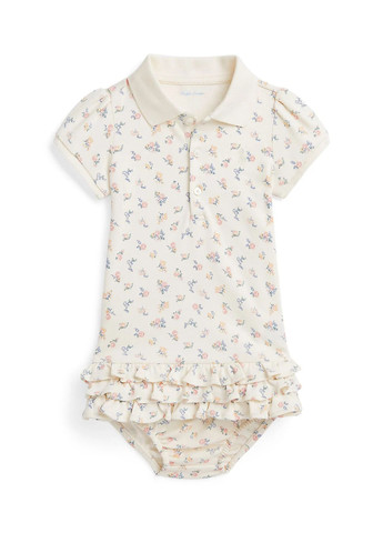 Дитячий комплект Polo Ralph Lauren. Стильний комплект від Polo Ralph Lauren складається з сукні та трусиків. Ця версія сукні-поло, виконана з гладкого бавовняного інтерлоку, поєднує чарівний квітковий принт і багатоярусну спідницю з воланами. У комплект входить відповідні трусики для підгузки для повного образу. Дуже м'який матеріал комплекту. Відмінна якість.