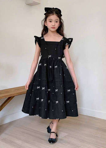 Осіннє сукня для дівчаток-підлітків DAZY, чорне. Це сукня міді з квадратним вирізом і розкльошеним А-силуетом. Рукава-волани та висока талія. Сукня виготовлена зі 100% бавовни та поліестеру. Рекомендації щодо догляду: ручне прання або професійна хімчистка.