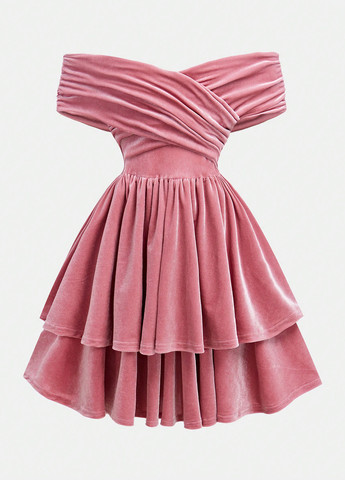 Матеріал Поліестер, Велюр / Колір Рожевий / Фасон З відкритими плечима / Довжина виробу Міні / Стиль Святковий, Кежуал