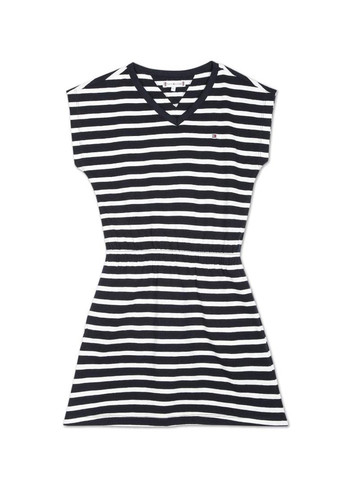 Сукня Tommy Hilfiger. Сукня для дівчинки з логотипом бренду спереду. Короткі рукави, виріз круглий. М'яка, легка тканина. Смугастий принт. Відмінна якість.