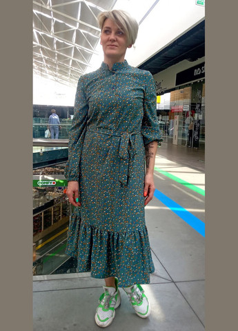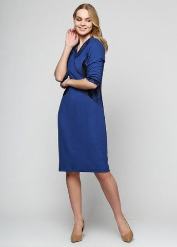 Бірюзове плаття-футляр із фактурного трикотажу, скомбіноване з тканини в різному напрямку. виріз горловини круглий, рукав ушивний три чверті, силует прямий, по пілочці на рівні стегон два симетрично розташовані клапани. Плаття на всі випадки життя, від офісу до вечірки) в наявності розміри — 44