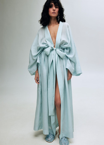 кешбек від 164 ₴розстрочка16 400 ₴Акція:20:52:12Безкоштовна доставка зbobkova блакитна кежуал сукня однотонна довгий шовк — виробництво УкраїнаXS-S•M-LМатеріал Шовк / Колір Блакитний / Довжина виробу Максі / Стиль КежуалСукня-кімоно з поясом, талія фіксується регуляторами, вільного крою.