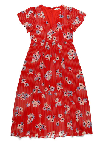Сукня з квітковим принтом, на підкладці, міні, збоку застібка на блискавці, відкриті плечі, тонкі бретельки, зав'язки на спині, дві бокові кишені, оборка.