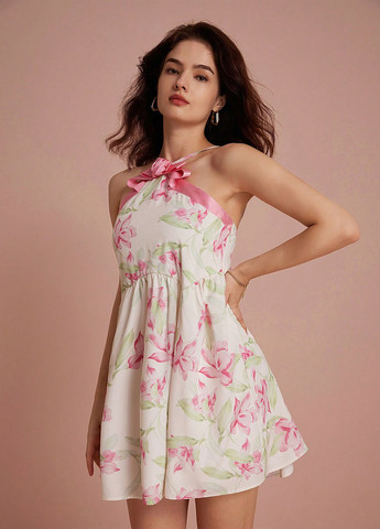 Жіноча сукня в стилі бохо Aveloria дизайну, що струменить, з короткими рукавами, з тканого матеріалу. Сукня має квадратний виріз, високу талію, розкльошений низ, рукави-ліхтарики з оборками та випадковий принт із квітковим візерунком по всій поверхні. Вона не має кишень і доступна у стандартній посадці.
