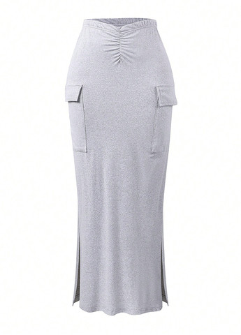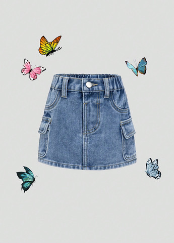 Ця джинсова спідниця із завищеною талією має прямий дизайн та регулярну посадку, має коротку довжину. Спідниця має натуральну лінію талії та виготовлена з джинсової тканини середньої еластичності. Вона містить такі деталі, як застібка-блискавка, кишеня та кнопка, і доступний у синьому кольорі з однотонним малюнком.