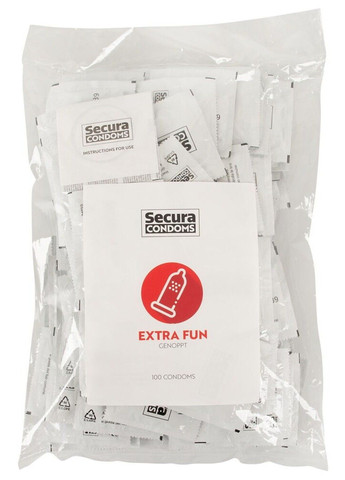 Прозорий презерватив Extra Safe від Secura для більш тривалого задоволення в ліжку! Прозорий презерватив гарантує інтимний захист обох партнерів під час пристрасного статевого акту та гарячих сексуальних експериментів. Серія Extra Safe від Secura, має збільшену товщину стінок, зменшує тертя на голівці і, таким чином, підвищує витривалість під час статевого акту. Крім того, він забезпечують підвищену безпеку під час анального сексу. Виготовлений з натурального латексу, змазаний силіконовою змазкою преміум-класу. Сумісний з інтимними лубрикантами на різній основі. Товар сертифікований і відповідає дерматологічним тестам якості. Вироблено в Німеччині. В упаковці 100 шт. Розмір: довжина 180 мм, номінальна ширина 53 мм.