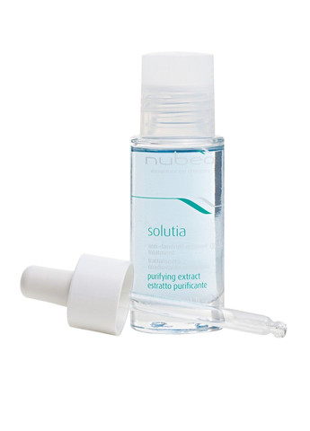 Очищуюча емульсія для волосся проти лупи Nubea Solutia Purifying Emulsion - на основі Клімбазолу, есенціальних олій Бергамоту, Лаванди й Евкаліпта та рослинних екстрактів Календули і Волоського горіха. Сприяє відлущенню омертвілих клітин шкіри. Перешкоджає утворенню лупи, зволожує шкіру голови та попереджає почервоніння. Ключові інгредієнти: - Клімбазол: протигрибковий інгредієнт нового покоління; запобігає утворенню лупи, нормалізує стан шкіри голови, зменшує свербіж. - Молочна Кислота: нормалізує секрецію шкірного сала, балансує рівень рН, ексфоліює та зволожує шкіру голови. - Екстракт Календули: заспокоює шкіру, сприяє регенерації та нормалізації роботи сальних залоз, володіє антибактеріальними та протигрибковими властивостями. - Екстракт Волоського Горіха: володіє антиоксидантною, протизапальною, себорегулюючою, бактерицидною і фунгіцидною дію. - Екстракт Ромашки: має бактерицидні, протизапальні, ранозаживляючі, заспокійливі властивості; усуває подразнення, почервоніння, лущення та свербіж. - Екстракт Фукуса (бурих морських водоростей): володіє сильними антиоксидантними та тонізуючими властивостями. - Олія Бергамота: чинить протизапальну, антиоксидантну, протимікробну дії; нормалізує секрецію сальних і потових залоз. - Олія Лаванди: виявляє протизапальний, антиоксидантний, протигрибковий і антибактеріальний ефекти, детоксикує і нормалізує роботу сальних залоз. - Олія Евкаліпта: володіє антисептичними та протизапальними властивостями, сприяє збереженню вологи; заспокоює та охолоджує шкіру голови, усуває свербіж. - Олія Чайного Дерева: володіє протизапальним, протигрибковим, антибактеріальним та себорегулюючим ефектами, стимулює регенерацію шкіри та усуває свербіж. - Олія Розмарину: нормалізує продукцію себуму; чинить виражений протизапальний, антиоксидантний, протимікробний ефекти. - Олія Шавлії: має виражений протигрибковий і антибактеріальний ефекти; нормалізує секрецію сальних і потових залоз, зменшує подразнення та свербіж; відлущує та сприяє оновленню епідермісу. - Каприлові тригліцериди: природні пом’якшувачі, отримані з кокосового масла, зменшують трансепідермальну втрату води, зволожують епідерміс, усувають відчуття стягнутості та сухості шкіри. - Бісаболол: основний компонент ефірної олії ромашки із заспокійливими, антиоксидантними, протизапальними та антимікробними властивостями. Спосіб застосування: Ніжними масажними рухами нанесіть необхідну кількість емульсії на проблемні ділянки. Не змивайте. Тільки для зовнішнього застосування. При проведенні процедури Solutia-терапії розпочніть із нанесення очищаючого екстракту Solutia, після чого перейдіть до нанесення очищаючої емульсії Solutia.