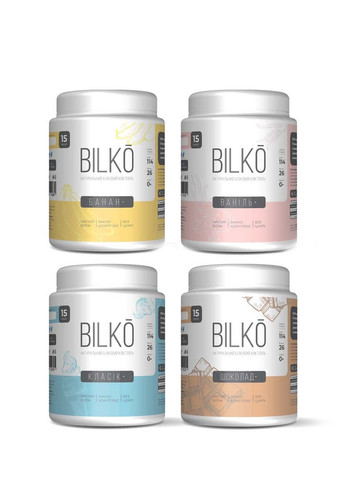 Комплект Чотири Смаки натуральний білковий коктейль для схуднення Білко 4х450 грам 60 порцій по 30 г Bilko – це високобілковий (87% білка) коктейль на основі натурального, якісного сироваткового білка. Мінімальна кількість жирів і вуглеводів робить його ідеальним вибором для тих, хто прагне стрункості та рельєфу. Переваги: ✅ Поповнює добову потребу в білку ✅ Збагачує раціон вітамінами та мінералами ✅ Підходить для заміни прийому їжі, схуднення та набору сухої м’язової маси ✅ Сприяє відновленню м’язів після тренування ✅ Покращує стан шкіри та стимулює ріст волосся Харчова цінність (на 1 порцію – 30 г): ✔ Білки – 26 г ✔ Вуглеводи – 0,9 г ✔ Жири – 1,0 г ✔ Калорійність – 114 ккал Доступні смаки: 🍌 Банан 🍦 Ваніль 🍫 Шоколад 🥛 Класик (молочний) 🍇 Лісова ягода 🍓 Полуниця Склад: 🔹 Гідролізований ізолят сироваткового білка (87%) 🔹 Натуральні ароматизатори 🔹 Емульгатор (соєвий лецитин) 🔹 Сукралоза ❌ Без цукру | ❌ Без ГМО 🚚 Доставка по Україні з центрального складу в Дніпрі. Завжди свіжа продукція в наявності!