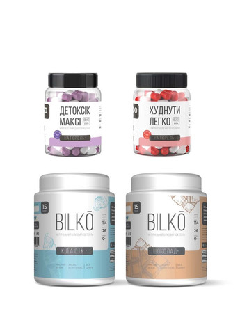 Комплекс для Легкого Схуднення білковий коктейль Bilko 30 порцій +Жироспалювач Детоксик Максі та Шейкер У комплекті: - Худнути Легко — ефективний натуральний жироспалювач ТМ Bilko, 100 капсул - Натуральний білковий коктейль Білко 2 пачки по 0,45 кг зі ягода (30 порцій) + Детоксик Максі 60 капсул — очищення організму від токсинів у подарунок! - Шейкер 600 мл Худнуті Легко | BILKO продукт — безпечне схуднення. безпечний склад, не шкодить здоров'ю нормалізує масу тіла зменшує жирові відкладення приборкує голод і покращує контроль апетиту Склад на порцію 2 капс: Ацетил-L-Карнітін – 200 mg L-тирозин — 100 mg Вітамін В6 – 0,5 mg Спосіб застосування: Порція (2 капсули) приймаємо 1 раз на день за 30 хвилин до їди, запиваємо водою Смачний високобілковий (87% білка) коктейль із натурального високоякісного сироваткового білка з мінімальною кількістю жирів і вугілля - Чудово заповнює потребу організму в білку - Доповнює потребу організму в вітамінах і мінералаж - Ідеально підходить для заміни харчування, а також для схуднення й набирання сухої м'язової маси - Оптимально для відновлення м'язів після тренування - Сприяє росту волосся й покращує стан шкіри В 1 порції (30 г): Белков: 26 гр Вуглеводів: 0,9 гр Жирів: 1,0 гр Енергетична цінність: 114 ккал Доступні смаки: - Банан - Ваніль - Шоколад - Класик (молочний) - Лісові ягоди - Полуниця Склад: Гідролізований ізолят сироваткового білка (87%), натуральні та ідентичні натуральним ароматизаторам, емульгатор — соєвий лецитин, сукралоза Без цукру Без ГМО Доставка з Дніпра з центрального складу в Україні Завжди в наявності Завжди свіжі терміни