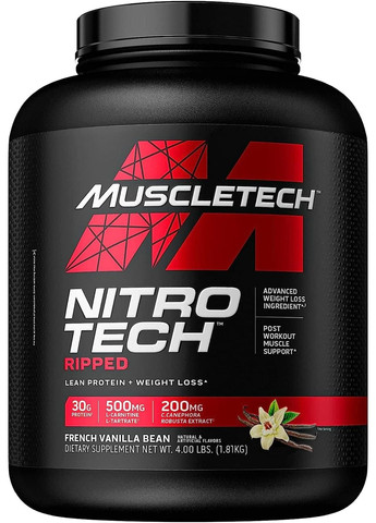 Коли йдеться про те, щоб стати стрункішим, ви шукаєте саме те, що вам потрібно. Nitro-Tech® Ripped забезпечить це за допомогою однієї універсальної добавки з чудовим смаком. Nitro-Tech® Ripped містить 30 г протеїну та 3 г вуглеводів у одній мірній ложці, добавка поєднує у собі високоякісний сироватковий протеїн і екстракт кави робуста (C. canephora robusta) — науково підтверджений інгредієнт для зниження ваги. Ця вдосконалена формула містить також середньоланцюгові тригліцериди, L-карнітину L-тартрат, екстракт шипшини та бурі водорості.