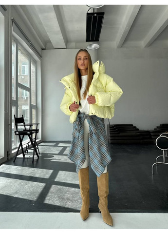 Зимовий укорочений пуховик, виконаний з плащівки на мембрані, що є непродувною і водонепроникаючою. Капюшон знімається. По низу куліски, для зтягування об'єму. Довжина виробу: 70 см, довжина рукава: 76 см, обхват грудей: 100 см, обхват талії: 120 см, обхват стегон: 120 см. Склад виробу: верх: 100% полієстер/підкладка: 100% полієстер/наповнювач: 100% еко пух