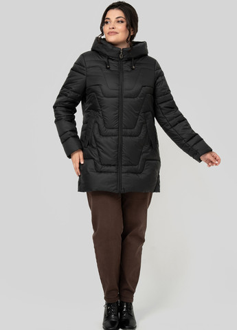 Куртка - пуховик прямого силуету, виготовлена з плащової тканини. Наповнювач: біопух 180 (г/м2). Рукав втічний, двошовний. Кишеня з листочком листочка та втачними краями, декорована патом. У бічних швах виконано фігурний розріз, декорований кнопкою. Каптур втачний, висота регулюється за допомогою шнура з фіксаторами. Застібка на блискавку. Температурний режим: до -10 °C. Підкладка: нейлон. Орієнтовні заміри по готовому виробу: р.50: ОГ - 114 см, ОТ - 112 см, ОБ - 118 см; ширина рукава – 21 см; ширина манжети – 14 см; ширина спинки – 40 см; р.52: ОГ - 118 см, ОТ - 116 см, ОБ - 122 см; ширина рукава – 22 см; ширина манжети – 14 см; ширина спинки – 41 см; р.54: ОГ - 122 см, ОТ - 120 см, ОБ - 128 см; ширина рукава – 23 см; ширина манжети – 15 см; ширина спинки – 42 см; р.56: ОГ - 126см, ОТ - 124см, ОБ - 132см; ширина рукава – 23,5 см; ширина манжети – 15 см; ширина спинки – 43 см; р.58: ОГ - 132 см, ОТ - 130 см, ОБ - 136 см; ширина рукава – 24 см; ширина манжети – 16 см; ширина спинки – 44 см; р.60: ОГ - 136см, ОТ - 134 см, ОБ - 140 см; ширина рукава – 24,5 см; ширина манжети – 16 см; ширина спинки – 45 см; Довжина рукава: 65 см; Довжина виробу по спинці: р.50,52 – 83 см; р.54,56 – 86 см, р.58,60 – 89 см.