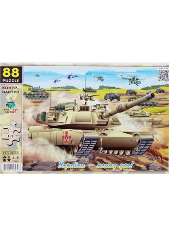 Величезне ігрове поле розміром 300 х 420 мм розрізане хвилястими лініями на 24 елементи (кожен елемент приблизно 70 х 100 мм), з яких потрібно скласти цілу картинку. ПРАВИЛА ГРИ 1. Складіть на столі пазл, нехай дитина уважно роздивиться його. 2. Вийміть будь-який кутовий елемент пазла, покладіть його поруч лицьовою стороною догори. Запропонуйте дитині покласти його на місце. 3. Вийміть будь-який елемент пазла з середини картинки, покладіть його поруч лицьовою стороною догори. Запропонуйте дитині покласти його на місце. 4. Поступово ускладнюйте завдання. Вийміть один елемент пазла та переверніть його лицьовою стороною донизу, покладіть поруч. Запропонуйте дитині вірно покласти його на місце. 5. Вийміть декілька елементів пазла, покладіть деякі з них поруч лицьовою стороною догори, а деякі з них лицьовою стороною донизу. Запропонуйте дитині покласти їх на місце. 6. Тільки після того, як дитина легко зможе впоратися з попередніми завданнями, розберіть пазл на окремі елементи (перемішайте елементи), запропонуйте дитині самостійно скласти картинку. Не забувайте постійно хвалити та заохочувати свого малюка, якщо завдання виконано правильно. Гра розвине: просторову уяву та сприйняття, образне та логічне мислення. Гра навчить: складати з частин ціле; порівнювати окремі елементи за формою, кольором та розміром.