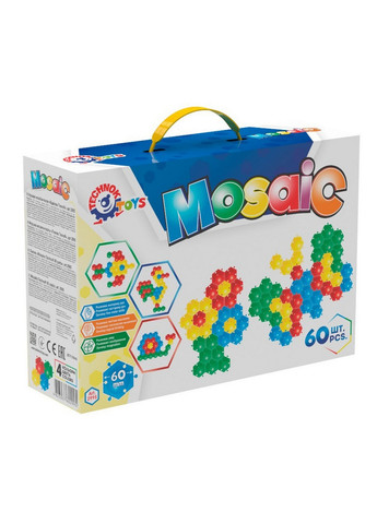 Мозаїка-пазл складається з кольорових шестикутників (60 частин), з яких малюк може скласти будь-які фігурки та візерунки. Розвиває в дітей віком художній смак, увагу, моторику рук. Розмір фішки 60 мм, чотири кольори. Іграшка для дітей за 1:00. Розмір упаковки: 33x23, 5х10, 5 см. Країна реєстрації бренду: Україна; Виробник: Технок; Бренд: Технок; Країна-виробник товару: Україна; Габарити: ширина: 23.5; Габарити: висота: 10.5; Габарити: довжина: 33; Вага товару: 0.625; Вид: Іграшка, що розвиває; Вік: Від 12 місяців; Матеріал: Пластик; Тип: Мозаїка; Торгова марка: Технок; Колір: кольоровий; Розмір виробу: 10,5 х33х23, 5 см; Стать: Унісекс; Упаковка: Пластикова коробка; Вікова група: Від 1 року;