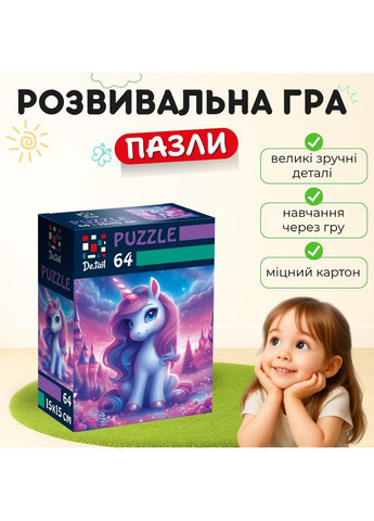 Пориньте у фантастичний світ з пазлом “Замріяна єдиноріжка”! Деталізоване зображення у яскравих кольорах неодмінно сподобається дитині. Оптимальна кількість пазлових елементів, 64 штуки, для дитини віком від 5 років. Розвиток навичок: дрібна моторика, координація рухів, логічне мислення, увага, пам’ять, посидючість. Вік: від 5 років. Матеріал: картон. Розмір пазлової картинки: 15 х 15 см.