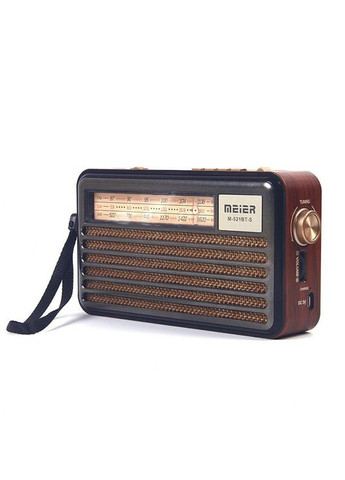 Радіоприймач портативний на акумуляторі в стилі ретро з сонячною панеллю та потужним звуком Meier Solar Radio M-520 Bluetooth BT-S USB TF AUX Радіоприймач M-520 BT-S у вигляді старовинного програвача неодмінно припаде до душі людям, які цінують елегантні та вишукані речі. Дана модель чудово доповнить інтер'єр кабінету, бару, бібліотеки чи вітальні. Приймач можна брати із собою, тому що він повністю автономний і працює від акумулятора типу 18650 (йде в комплекті). Зарядка радіо може відбуватися як від мережі, від USB, від Павербанка, від сонця. Стильний дизайн, глибоке звучання, корпус під дерево та простота використання – головні особливості цього радіоприймача. Програвач M-520 BT-S стане особливим подарунком для цінителів якісних речей із великим функціоналом. Він принесе до будинку неповторну енергетику та позитивні емоції. Фізичні параметри: Габарити радіо (ШхВхГ): 20.5 х 11.5 х 6.1 см; Габарити упаковки (ШхВхГ): 24 х 14 х 10 см; Телескопічна антена: 50 см; Довжина кабелю живлення: 150 см. Діапазон частот: FM: 87-108 МГц; AM: 513-1629 КГц; SW: 7.8 – 16.2 MHz. Характеристики: Bluetooth: 5.0; Потужність: 5W; Можна через будь-який блок живлення від мережі 220V / Акумулятор 18650 3.7V / USB роз'єм 5V / Сонячна панель; Роз'єм USB; Перемикання: MP3, FM, AM, SW Роз'єм USB 5V для заряджання; Роз'єм AUX; Роз'єм для TF-карти; Механічне керування гучністю; Механічне керування радіохвилями. Комплектація: Радіо M-520 BT-S; Кабель зарядний microUSB-USB; Сонячна панель; Акумулятор 18650 Ліхтарик від USB; Ремінець; Фірмова коробка.