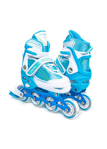 Ролики Caroman Sport." Tiffany (розмір 27-31) Неймовірно модні і круті ролики Caroman Sport в карколомному кольорі - ідеальний подарунок для дитини. Юний гонщик буде в повному захваті від такого забарвлення. , які вже давно і впевнено стоять на роликах.Тепер вдома не всидиш - нові ролики так і звуть на вулицю, на пошуки пригод і веселих гонок з друзями. черевику дає нозі дихати, а м'який шкірозамінник не тисне система гальмування для маневрування і трюків манжета з поліпропілену високої якості високоміцна рама кнопковий тип регулювання на 3 повних рази Характеристики: Тип: роликові ковзани Вік: 3+ Колір: Тиффани Розмір: 27 : 16 - 18 см Колеса, що світяться: так Тип коліс: PU безшумні м'які (не пластмасові) Діаметр коліс: 64мм (підшипники ABEC 7) Жорсткість коліс: 82А Основа рами: алюміній Виробник: Caroman Sport. Матеріал рами: Алюмінієвий сплав. Колеса, що світяться: К. Тип коліс: Поліуретанові. Підшипники: ABEC 7. Довжина устілки: 16 – 18 см. Діаметр коліс: 64. Вік: 3 роки, 4 роки, 5 років, 6 років. Категорія: Для хлопчиків, Для дівчаток, Універсальні. Матеріал: алюмінієвий сплав. Тип: Роликові ковзани. Торгова марка: Caroman Sport. Колір: Тіффани. Розмір виробу: 27-31. Розмір: 27-31. Фіксація ноги: П'ятковий ремінь, Шнурки, Бакля (кліпса), Липучка із затискачем, Ремінець із застібкою. Тип лайнера: Інтегрований. Розміщення коліс: In-line із можливістю перестановки. Стать дитини: Хлопчик, дівчинка. Черевик: Комбінований. Жорсткість коліс: 82А.