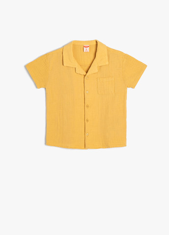 Ткана бавовняна сорочка. Модель з відкладним коміром і застібкою спереду. Довгі рукави з манжетами на ґудзиках. Задня кокетка і закруглений низ. Контрастний колір внутрішньої сторони коміра та манжетів.