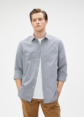 Стильна чоловіча класична сорочка, у широку смужку.Сорочка має класичний комір, повністю застібається на гудзики і на три гудзики на манжеті.
