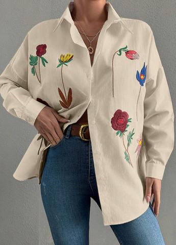Класична жіноча сорочка прямого крою. Має відкладний комір та застібається на ґудзики. Рукави можна підкотити й зафіксувати на ґудзик для більш неформального вигляду. Спинка подовжена, що додає сорочці універсальності. Ідеально підходить для створення ділових і повсякденних образів.