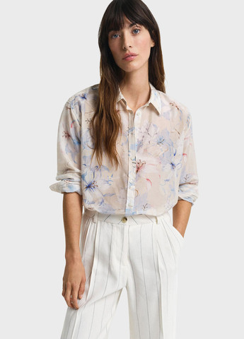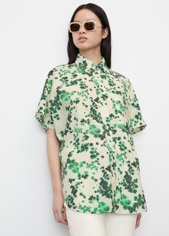 Сорочка з легкої, м’якої тканої тканини з квітковим візерунком по всій поверхні. Застібка на прихованих гудзиках по всій довжині та манжети на рукавах із одним ґудзиком. Довжина по спинці приблизно 71 см, довжина рукава приблизно 62 см для розміру 36; довжина по спинці приблизно 71 см, довжина рукава приблизно 63 см для розміру 40.