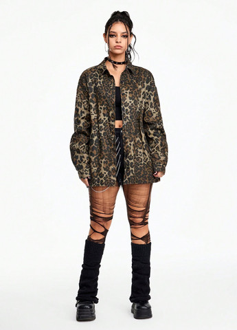 Колір Сірий / Візерунок Леопардовий / Сезонність Зима / Фасон рукава Вшитий / Стиль Повсякденний, Кежуал