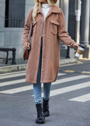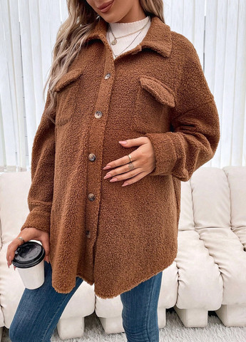 Куртка SHEIN Maternity Flap Pocket Shoulder Teddy Coat – це тепла та затишна повсякденна куртка-сорочка, що підходить для холодних днів. Має дизайн плюшевого ведмежа, тканину з невеликою еластичністю, довгі рукави та однобортну планку. Куртка має виріз під комір і вільний крій, що робить її зручним вибором для повсякденного носіння.