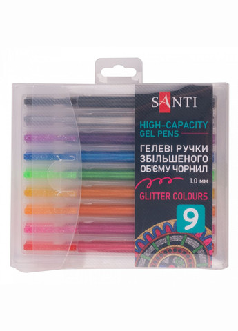 Набір кольорових ручок гелів Santi 420471 Набір кольорових ручок гелевих Santi 420471 налаштовує на позитивний лад! Ультралегкий корпус із гладким матовим покриттям. Водостійке чорнило на гелевій основі має наднизьку в'язкість, що забезпечує швидке висихання та економічну витрату. Вузол Premec (швейцарська технологія), що пише, гарантує бездоганну якість листа. Унікальний запатентований склад чорнила та високоякісний пишучий вузол забезпечують можливість написання без натискання та додаткового зусилля. Характеристики: Тип: гелевая ручка Матеріал: комбінований Кількість кольорів: 9 Кількість у наборі: 9 шт Товщина лінії листа: 0,6 мм; 0,7 мм; 1,0 мм Колір: різні кольори Виробник: Santi